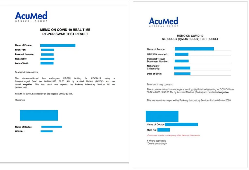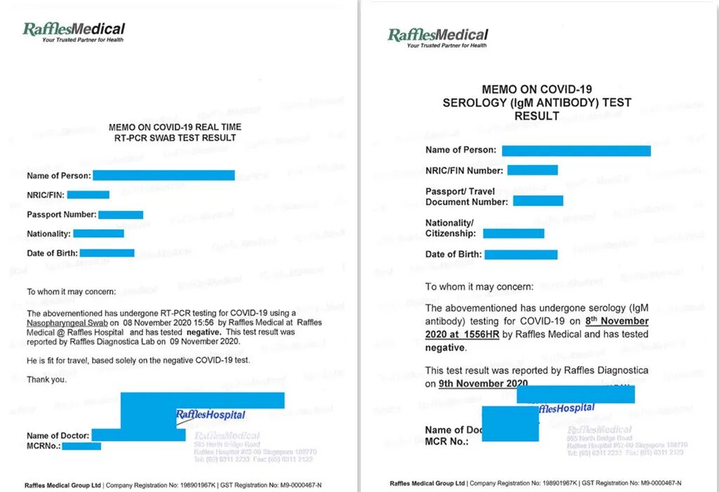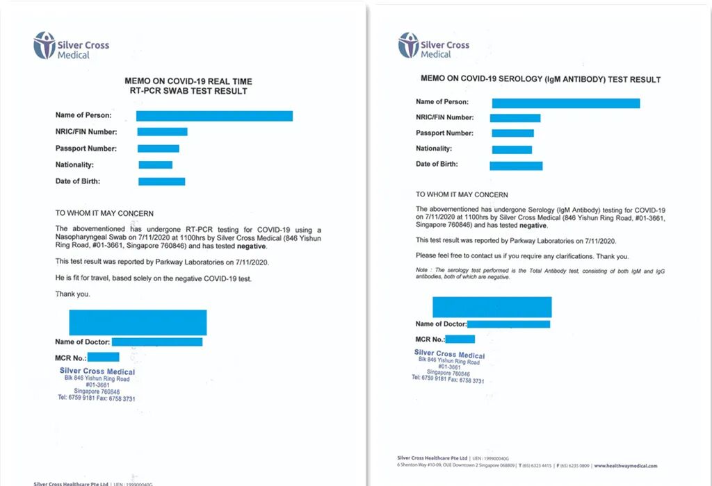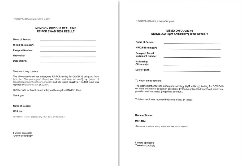 为便于大家分辨所持证明是否为统一格式,我馆整理了近期较常见的部分检测机构出具的符合统一格式要求检测证明样本,供旅客参考(不代表使馆推荐有关检测机构,其他新加坡政府公布的检测机构出具的证明,符合要求的同样可以直接登机)。