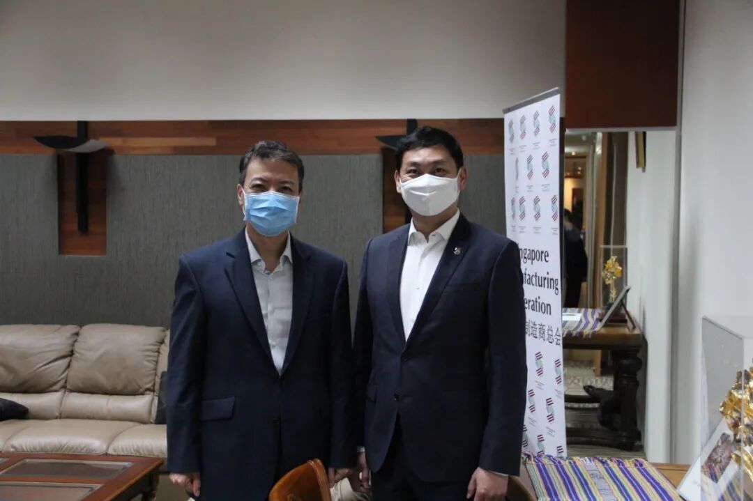2020年10月14日上午,中资企业(新加坡) 协会会长程军拜访新加坡制造商总会会长符标熊,双方就后疫情时期共同举办研讨会、对接会,创新开展促进双方会员企业贸易投资服务、签订战略合作备忘录等业务合作举行会谈。中企协秘书处付晓辉、 杨维迅,制造商总会秘书处白永良、兰钦妮 参加会谈。