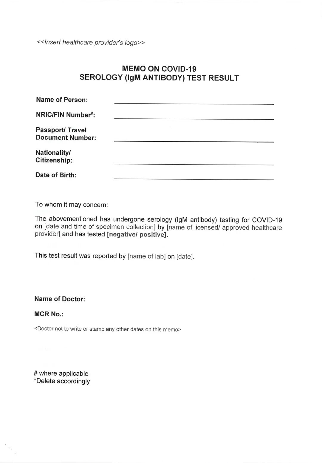 1. 统一格式核酸检测阴性证明样本2. 统一格式血清IgM抗体检测阴性证明样本