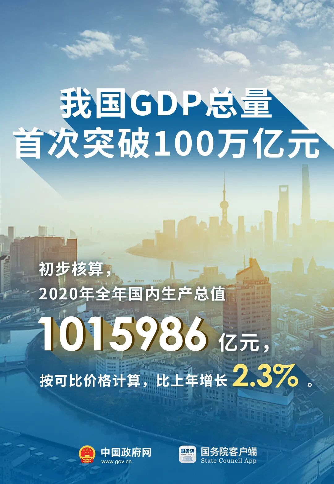 国家统计局:我国GDP历史上首次突破100万亿
