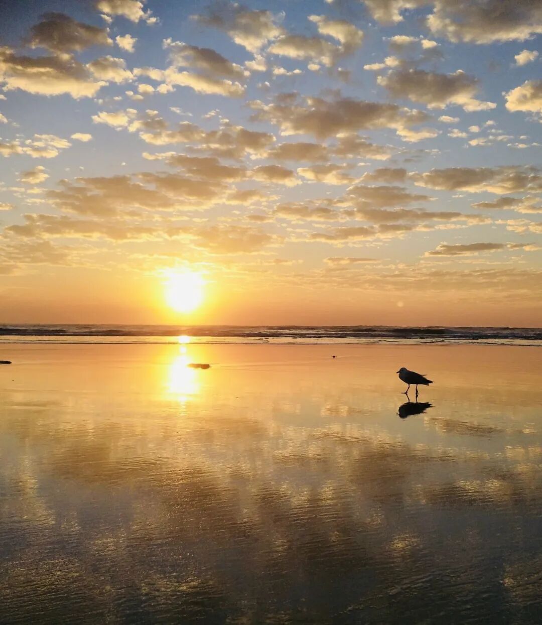 这里是墨尔本。照片拍摄于墨尔本Anglesea海边。清晨的太阳从海岸线上冉冉升起,驱赶了所有的黑暗,万物沉静,海水如镜,海鸥静静地期待着日出的到来。这就像我们目前处在疫情的黑暗中,黎明总会到来,人类一定会战胜疫情。疫情后,欢迎您来澳大利亚!