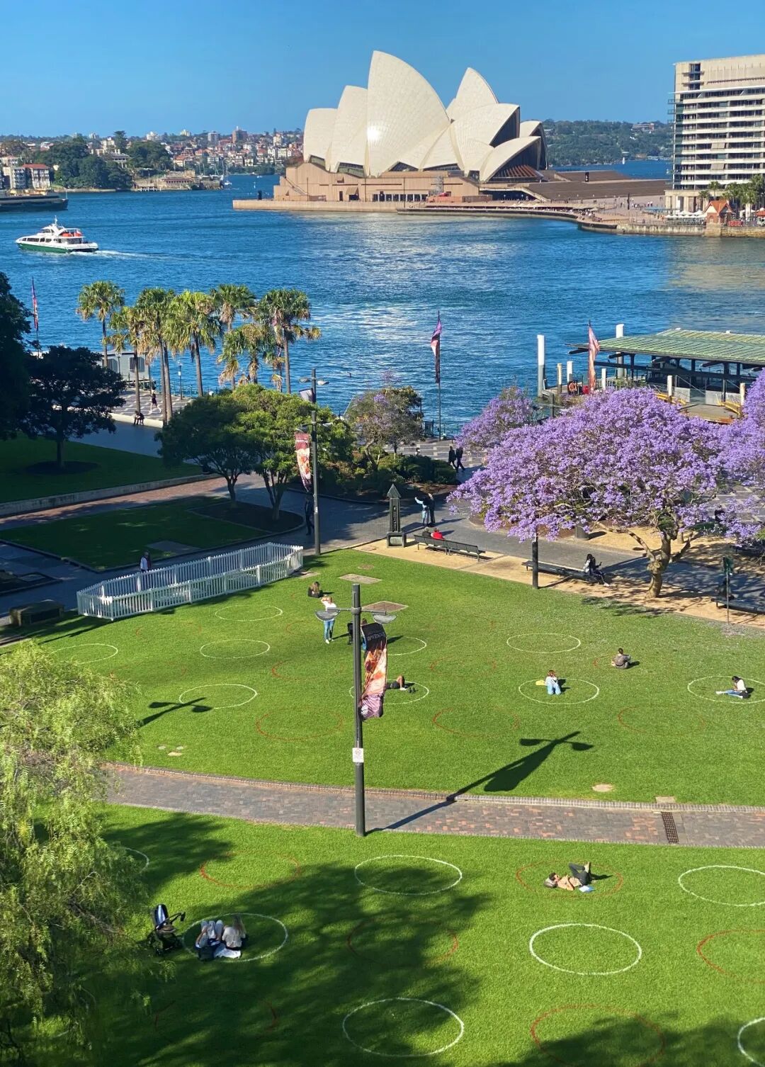 这是去年11月悉尼春暖花开的季节。受Covid-19影响,绿色的草坪上出现了一个个圆圈,保障人们在沐浴阳光的同时保持着社交距离。悉尼的疫情同全球一样起起伏伏,伴随疫苗接种率的提升,我相信后疫情时代终会到来。疫情后,欢迎您来澳大利亚。