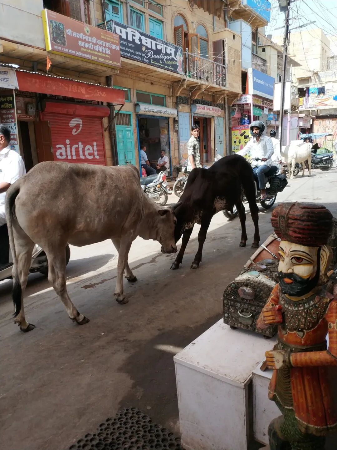 拍摄于印度拉贾斯坦邦的小镇上,两头印度瘤牛正在街中央“比武”。作为全世界牛幸福感最强的国家,在这里,牛被奉为印度教里的神。哪怕是大城市的马路上牛与人类载具共存的景象也很常见,“和谐”、“淳朴”与“共存”的特点筑成了这里别样的生态美景。疫情后,欢迎您来印度。