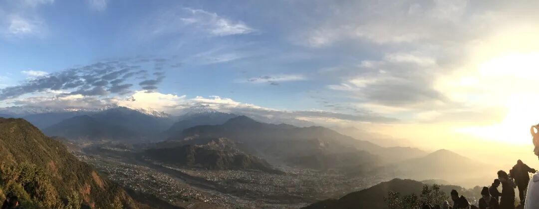这里是尼泊尔桑冉库特某一座小山山巅,太阳已然升起,朝晖渲染了半边天,唤醒了兀立的雪山,也唤醒了山谷里沉睡的村庄。疫情后,欢迎您来尼泊尔。