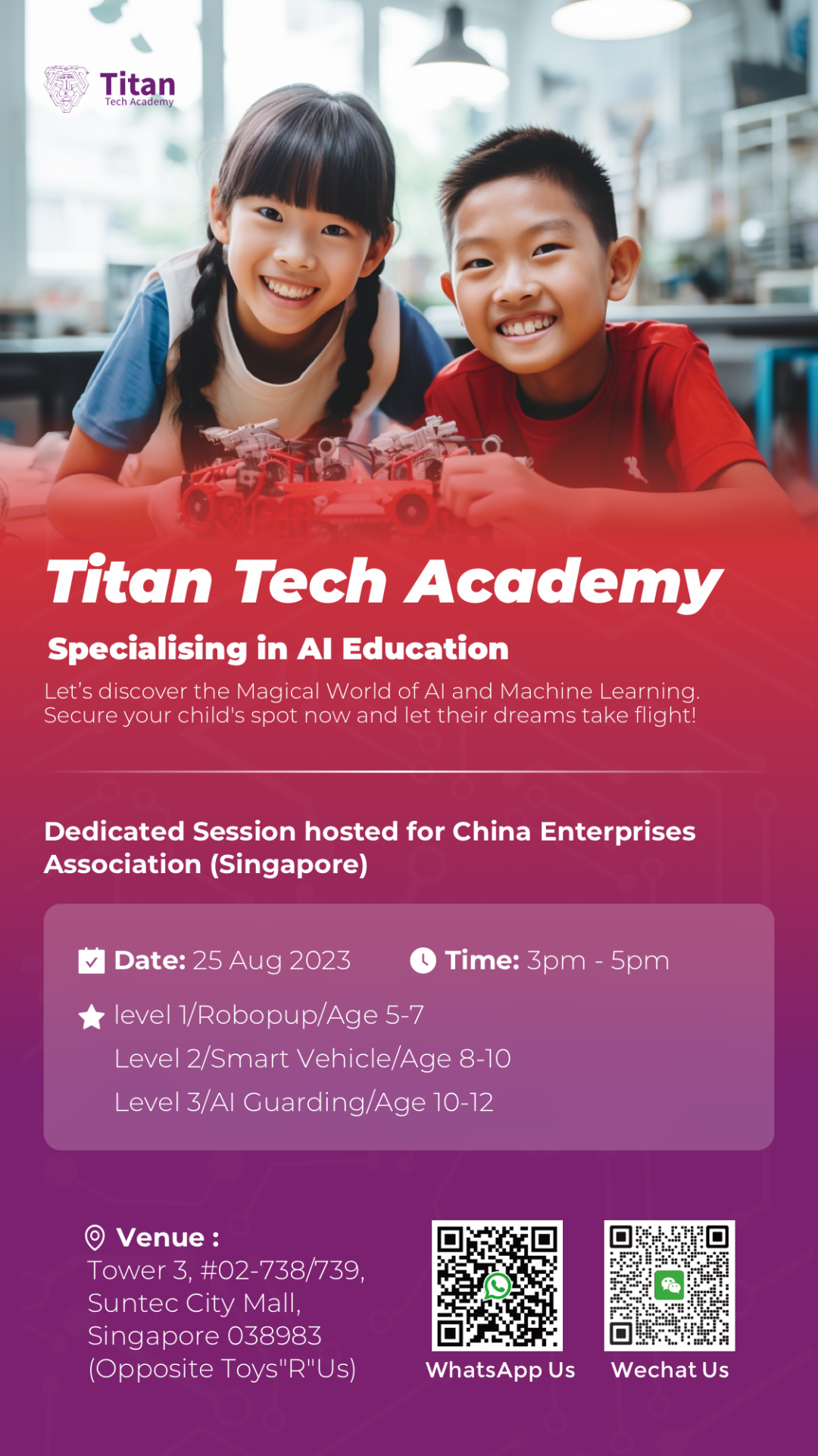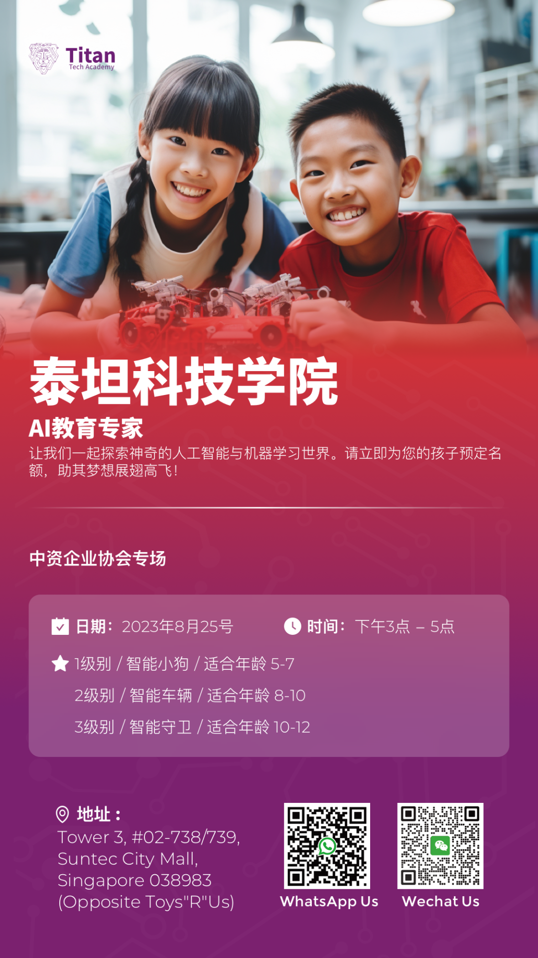 活动预告 | 8月25日下午:泰坦科技学院 少儿AI学习课程——中资企业协会专场